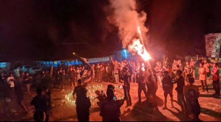 Lebak, UNB,- Puluhan suporter yang tergabung dalam aliansi Suporter SE Banten Selatan gelar Malam perdamaian di Alun alun Malingping, Kecamatan Malingping, Kabupaten Lebak, Sabtu malam (15/10/22).