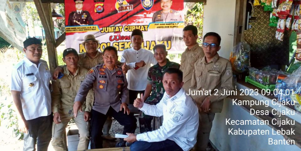 Kapolres Lebak Polda Banten AKBP Wiwin Setiawan S.I.K. M H, melalui Kapolsek Cijaku AKP Aam Marto S SIP.,M.Pd mengatakan, “Ya pada hari ini, kami mengadakan acara Jumat Curhat bareng Polsek Cijaku dengan menemui kepala desa yang sedang kumpul di di Desa Mekarjaya Kecamatan Cijaku Kabupaten Lebak,” ujar AKP Aam.