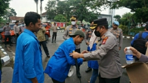 Dalam kesempatan tersebut Kapolres Lebak Polda Banten AKBP Wiwin Setiawan,SIK,M.H membagikan minuman kepada para peserta audensi dari BEM STKIP Setia Budhi Rangkasbitung.