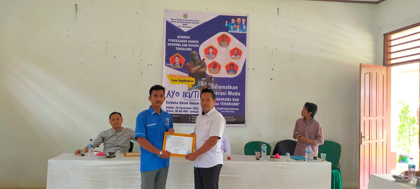 Diwaktu bersamaan, KASUBDIT KAMSUS KOMPOL Adil Pasaribu, SH menuturkan rasa terimakasih kepada DPK KNPI Kecamatan Malingping sudah mau kerjasama dengan Polda Banten dalam melakukan pencegahan peredahan Narkoba dan Faham-Faham teroris khususnya di wilayah kecamatan malingping.