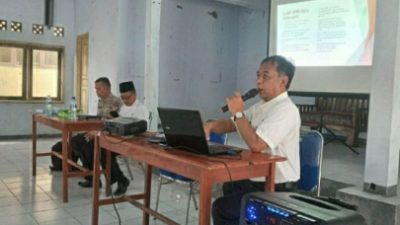 Simulasi pelaksanaan Pemilihan Kepala Desa disampaikan oleh Mukmin sebagai anggota Sub Panitia Pilkades Kecamatan Banjarsari.