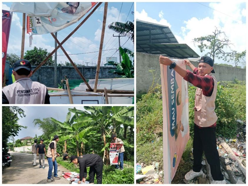 Kab. Serang, UNB.- Panitia Pengawas Pemilu (Panwaslu) Kecamatan Jawilan Kabupaten Serang melakukan penertiban Alat Peraga Kampanye (APK) pada masa tenang Pemilu 2024.
